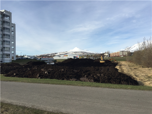 GV gröfur vinna að jarðvegsskiptum á lóðinni við Undirhlíð 1. Meðfylgjandi eru nokkrar myndir sem teknar voru í blíðunni í morgun.